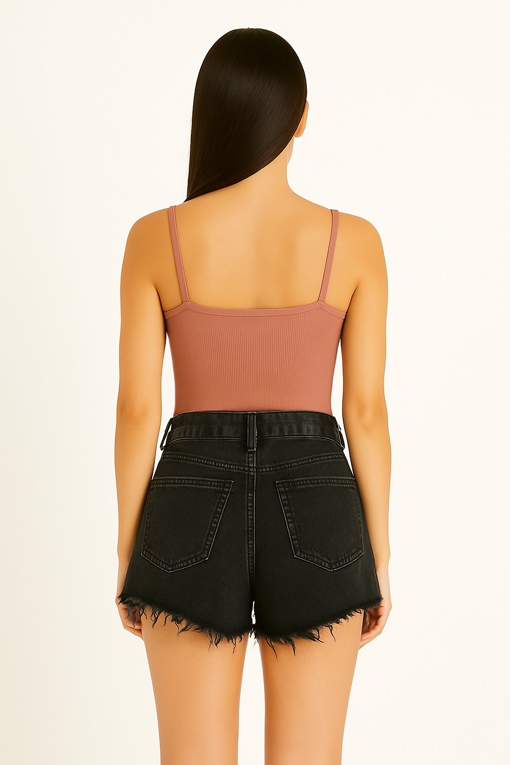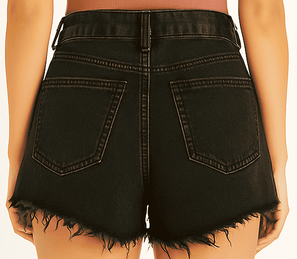 These black high-waisted denim shorts are a summer wardrobe essential, crafted from sturdy cotton denim with a flattering fit. The raw, frayed hem adds a trendy, edgy vibe, while the high-rise waist and button-fly closure provide both support and style. Featuring classic five-pocket styling, reinforced belt loops, and double-stitched seams, these shorts are both functional and fashion-forward.