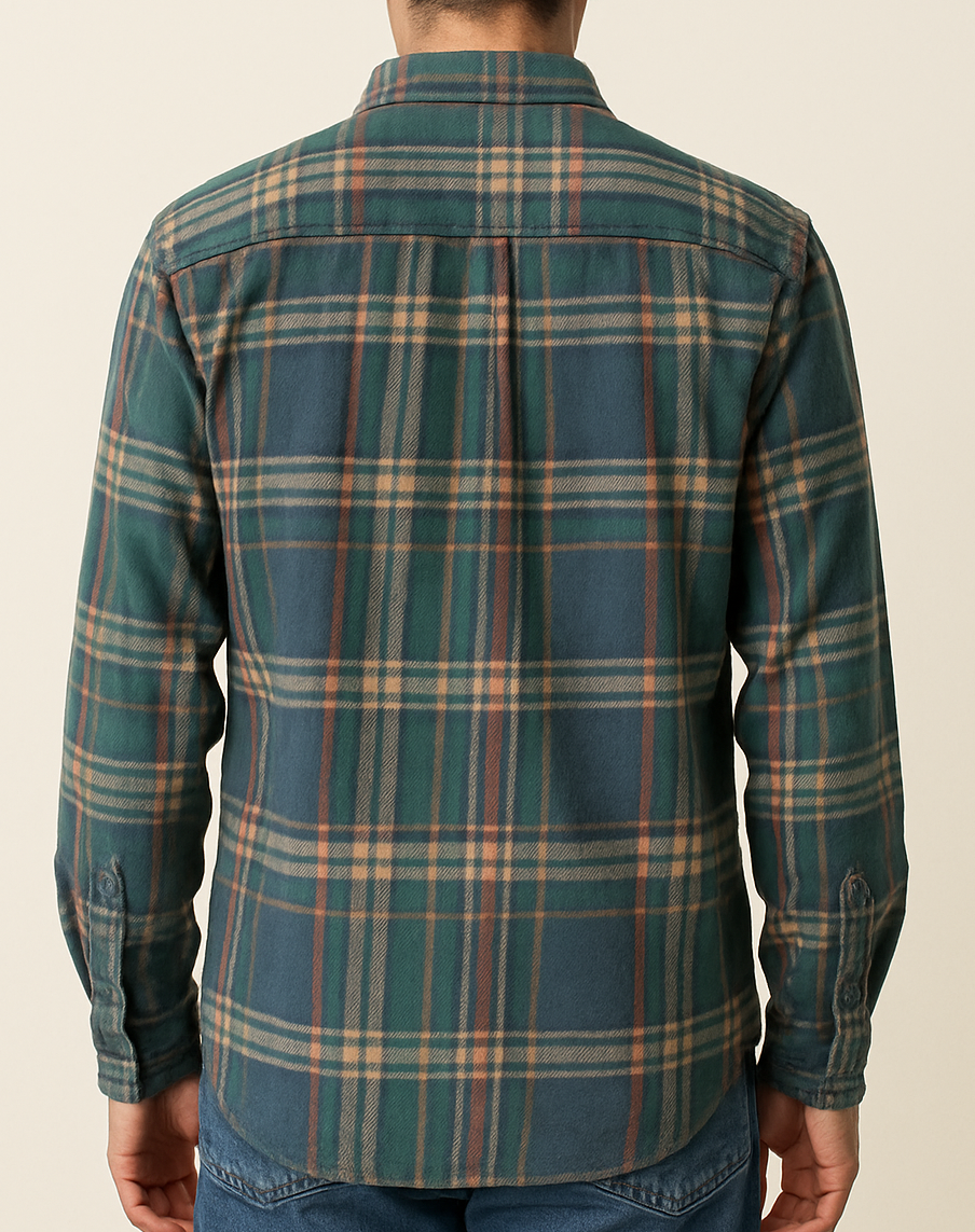 This men’s forest green flannel shirt is the perfect blend of rugged style and everyday comfort. Designed with a bold multicolor plaid pattern in hues of green, rust, and beige, it exudes a timeless casual vibe. Made from soft brushed cotton fabric, it features a front chest pocket, button-down closure, and full sleeves with buttoned cuffs. The curved hem and relaxed fit make it ideal for layering or wearing on its own. A go-to essential for cooler seasons or casual days out.