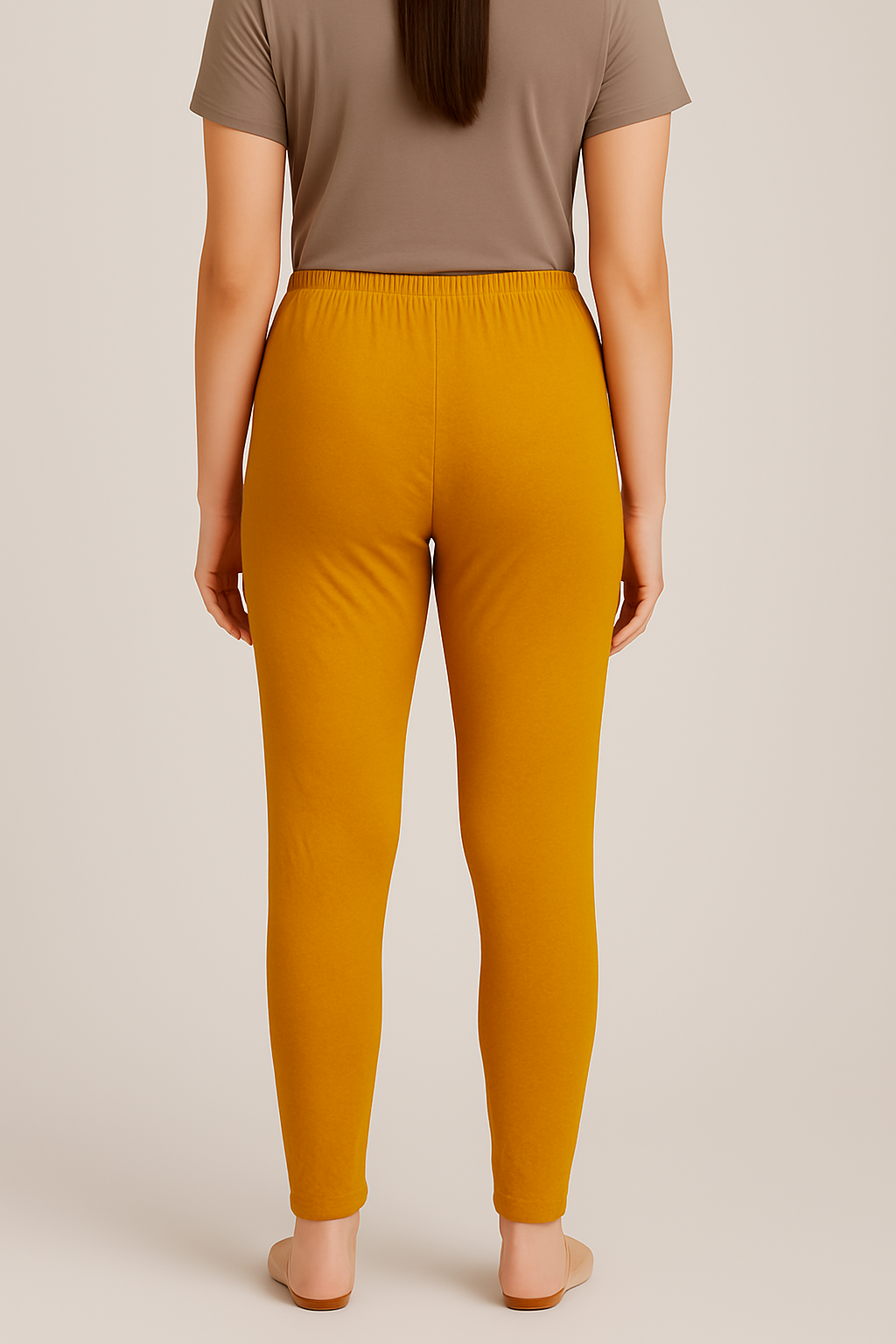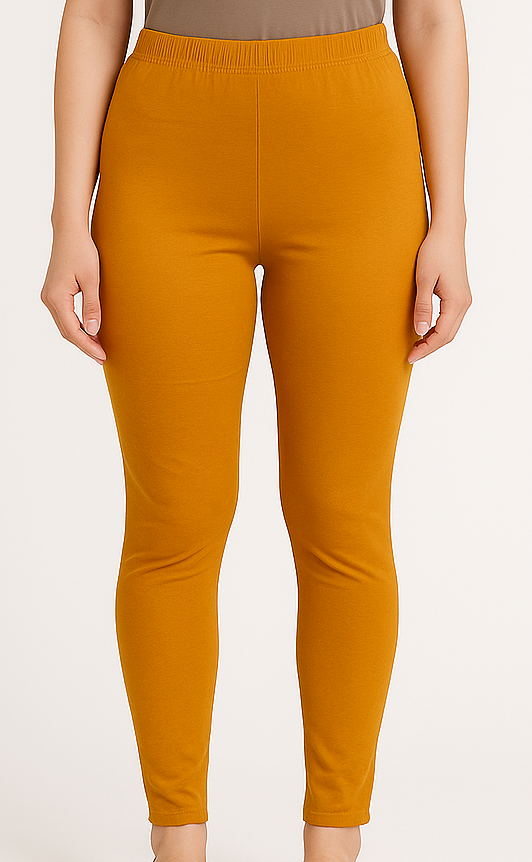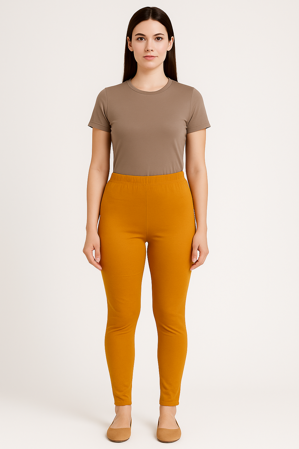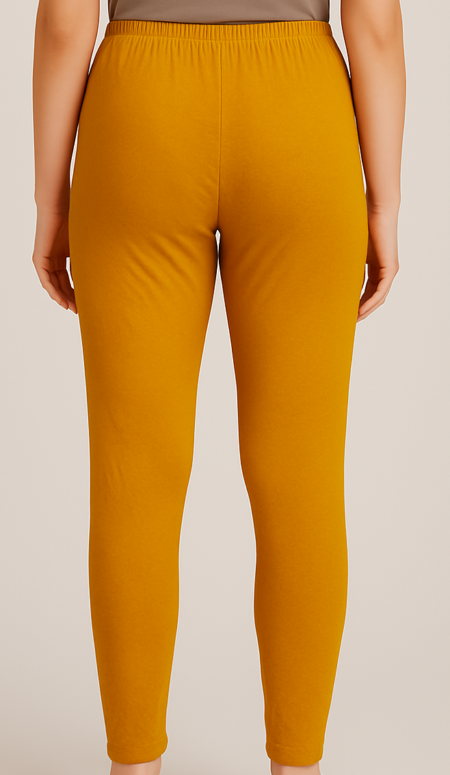 Elevate your everyday wardrobe with these vibrant mustard yellow leggings designed for both comfort and style. Made from soft, stretchable cotton fabric, these leggings offer a snug fit with an elastic waistband that ensures all-day wearability. Ideal for casual outings or layering under tunics and kurtis, they combine functionality with a bold color pop.