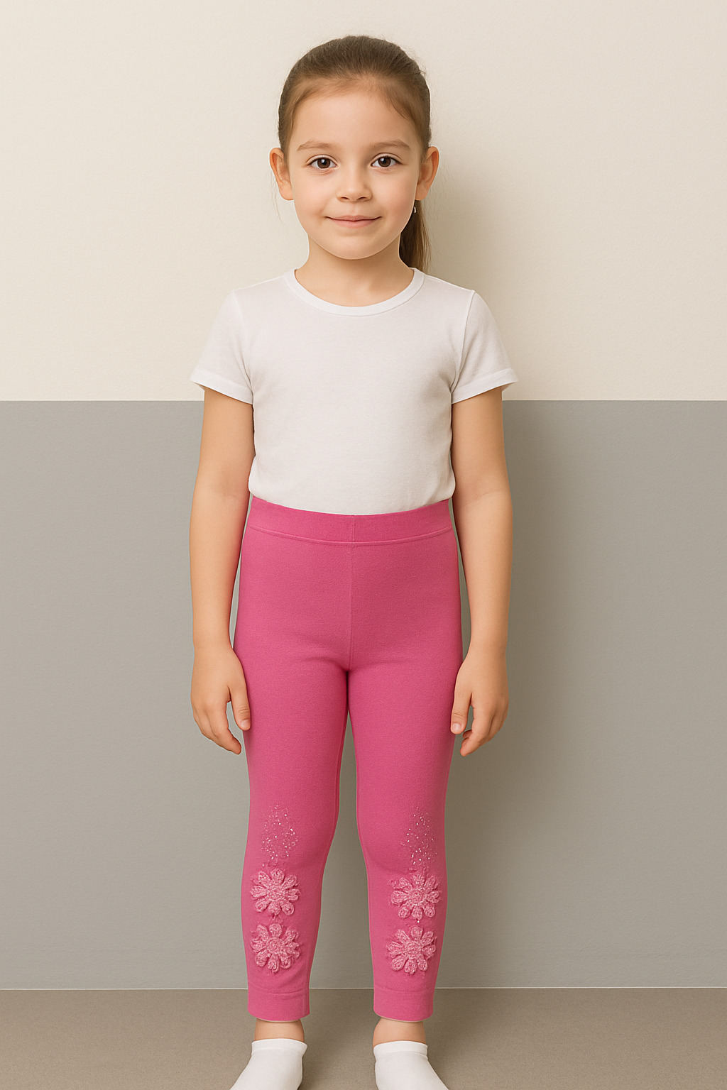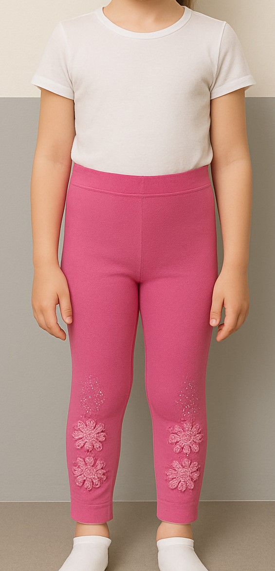 Add charm to your little one’s wardrobe with these stylish pink churidar leggings. Designed in a comfortable stretch fabric, these leggings feature a full elastic waistband for a snug fit. The front lower legs are beautifully adorned with pink floral embroidery and scattered bead embellishments, adding a touch of sparkle. The soft texture and tapered fit make them ideal for casual wear, playdates, or festive occasions. Pair them effortlessly with tunics or tees for a cheerful, comfy look.