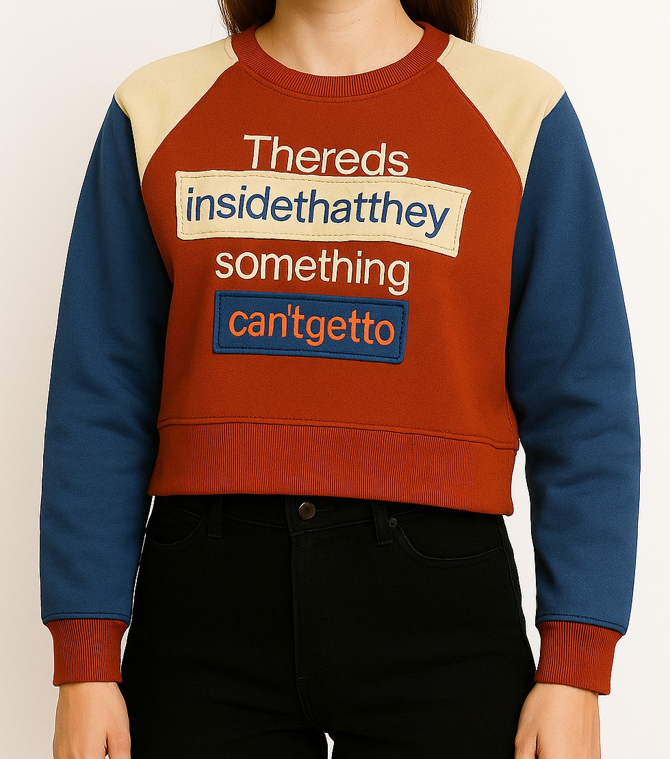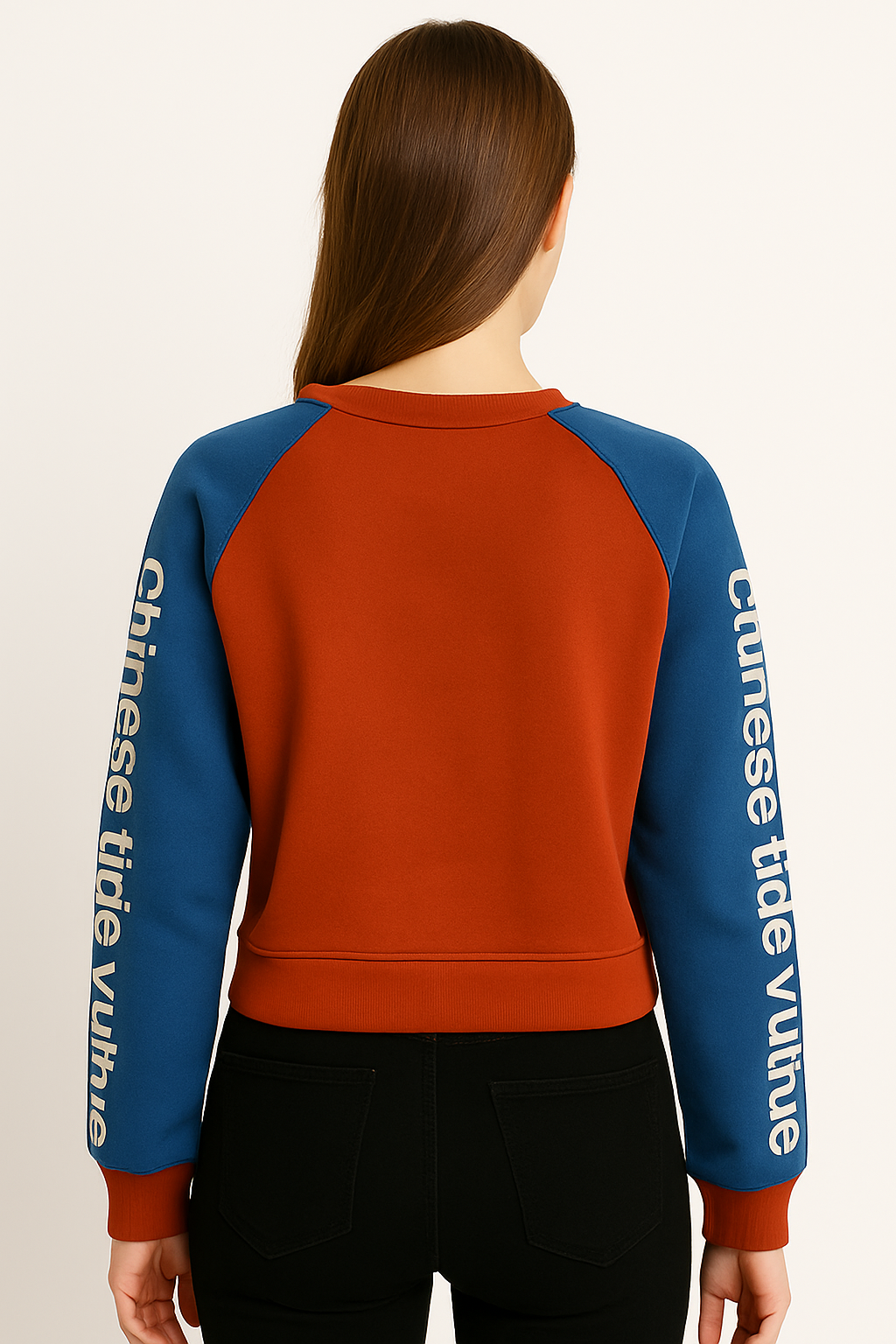 This trendy rust and blue colorblock sweatshirt features bold printed text across the front and sleeves. Made from soft, durable fabric with a relaxed fit, it delivers both comfort and style. The quirky front slogan adds character, while the contrasting sleeves with “Chinese tide vulture” text make it a unique streetwear piece. Ribbed hem and cuffs provide a snug finish.