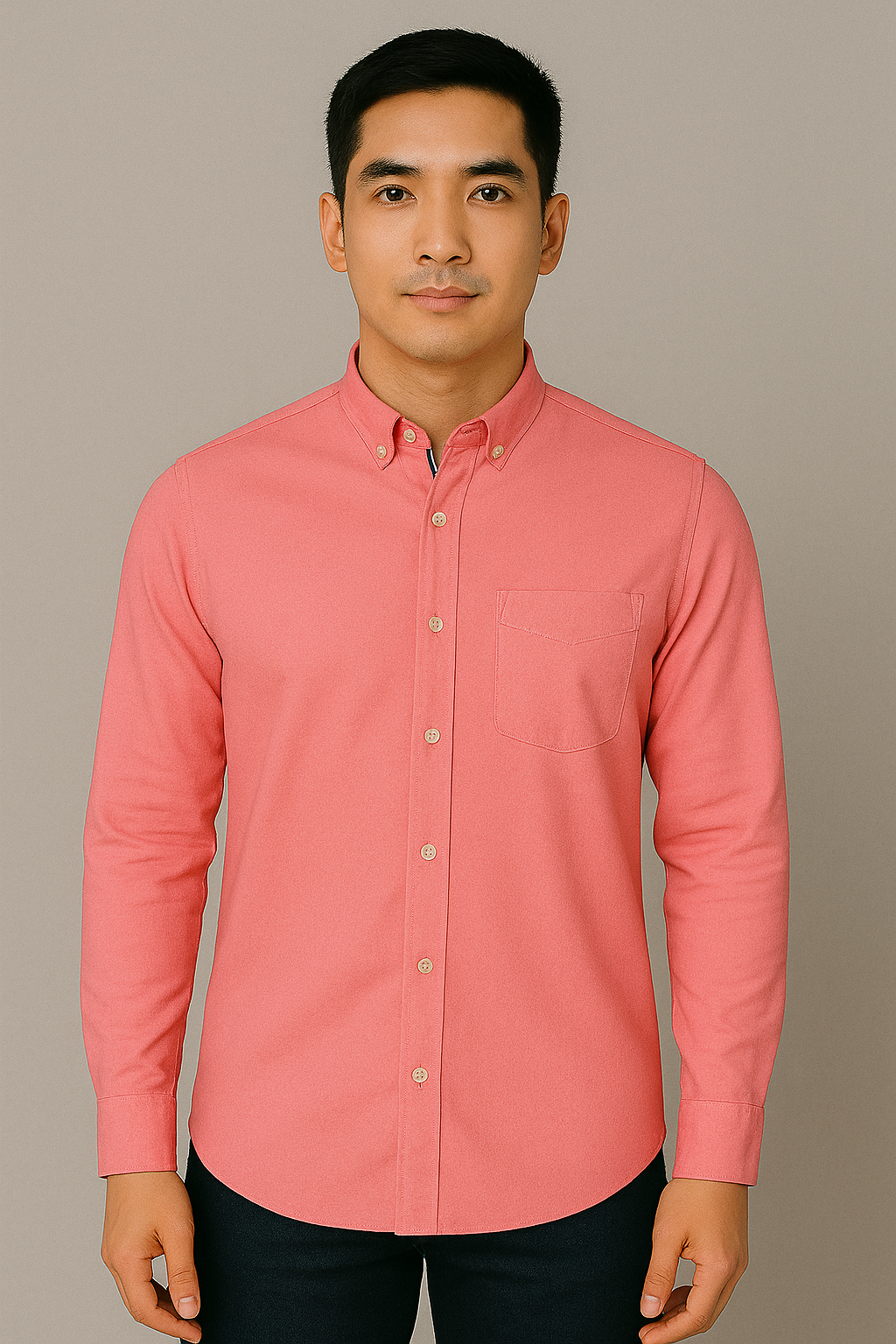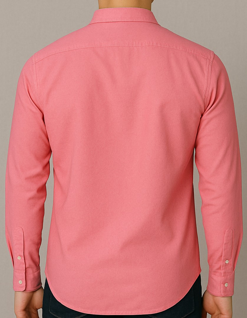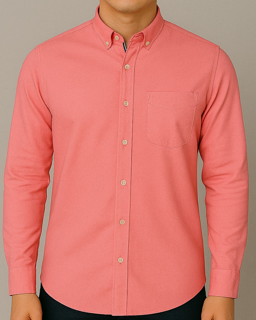 Upgrade your casual wardrobe with this elegant salmon pink Oxford shirt crafted from premium cotton fabric. Featuring a classic button-down collar, single chest pocket with stylish stitch detail, and full sleeves with buttoned cuffs, this shirt strikes the perfect balance between refined and relaxed. The soft yet durable weave ensures long-lasting comfort, while the tailored fit enhances your silhouette. Ideal for both workdays and weekends, it pairs effortlessly with jeans or chinos.