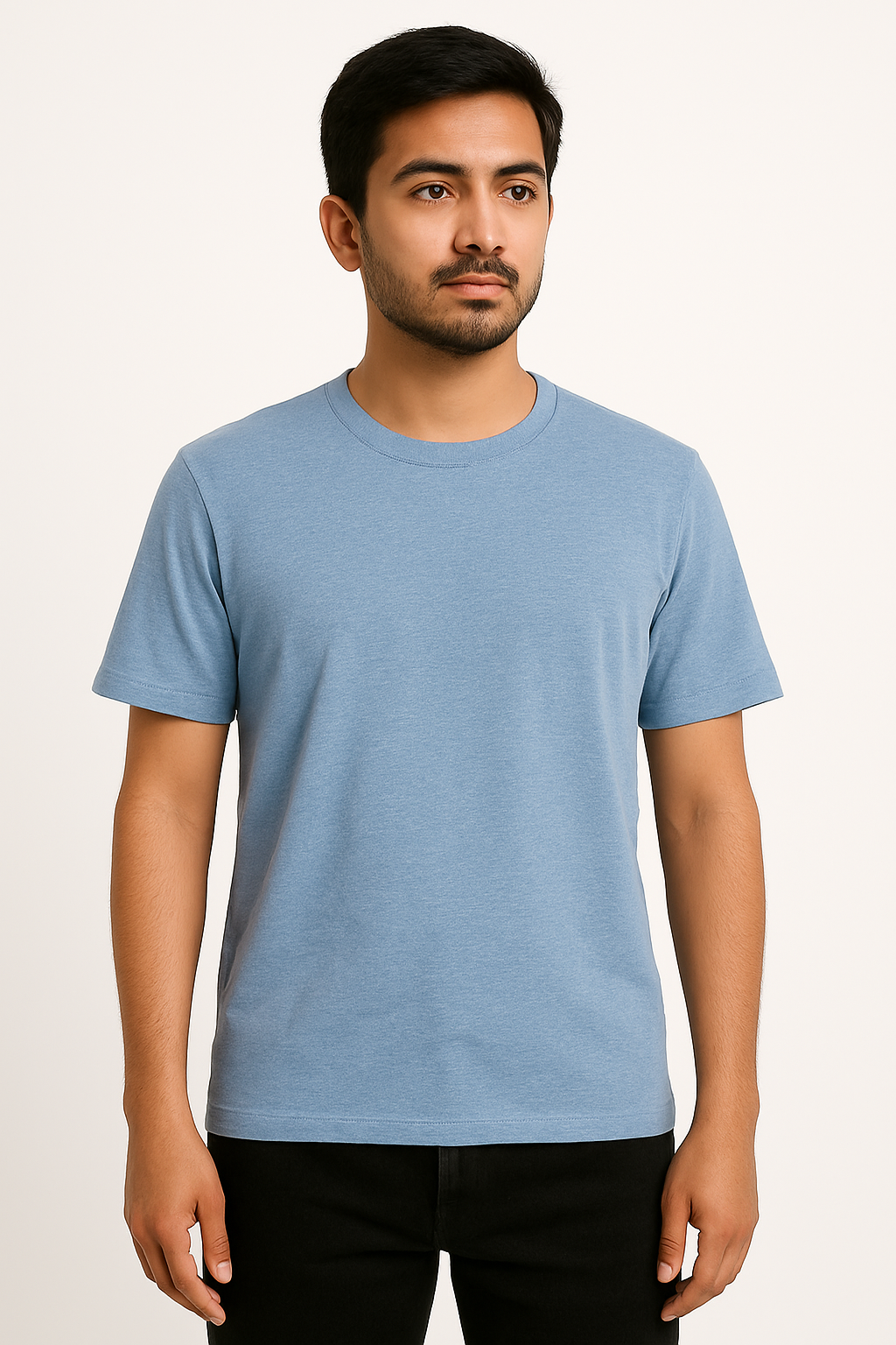 This premium sky blue crew neck T-shirt is crafted from soft, breathable cotton fabric for all-day comfort. Featuring a clean, minimalist design with a classic crew neckline and short sleeves, this tee delivers versatile everyday style. The smooth finish and subtle heathered texture make it perfect for both casual outings and layering under jackets. Its regular fit provides a relaxed yet structured look, making it a timeless addition to any wardrobe.