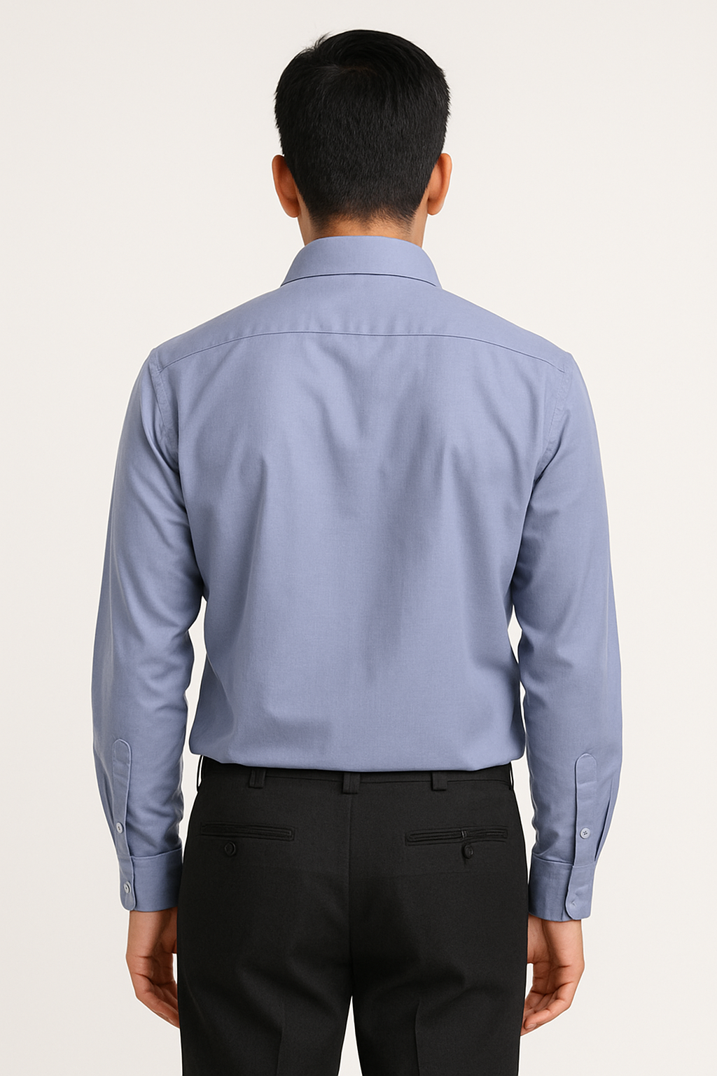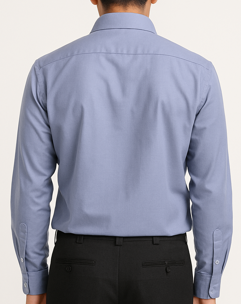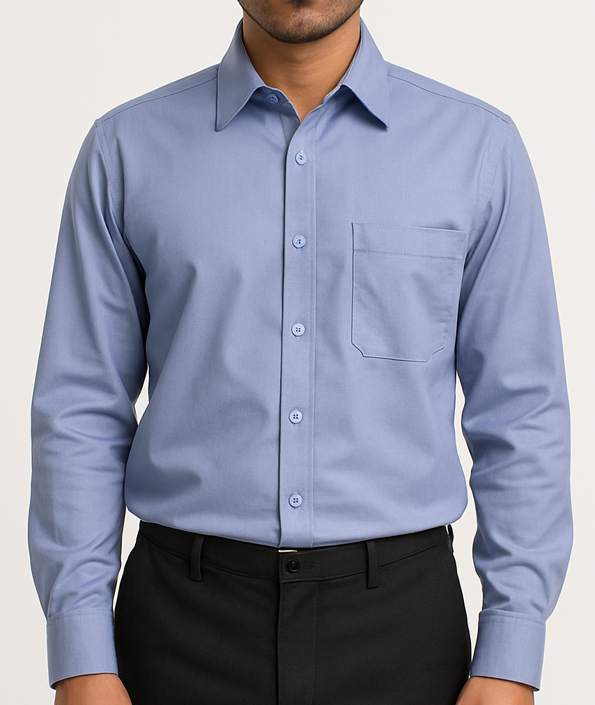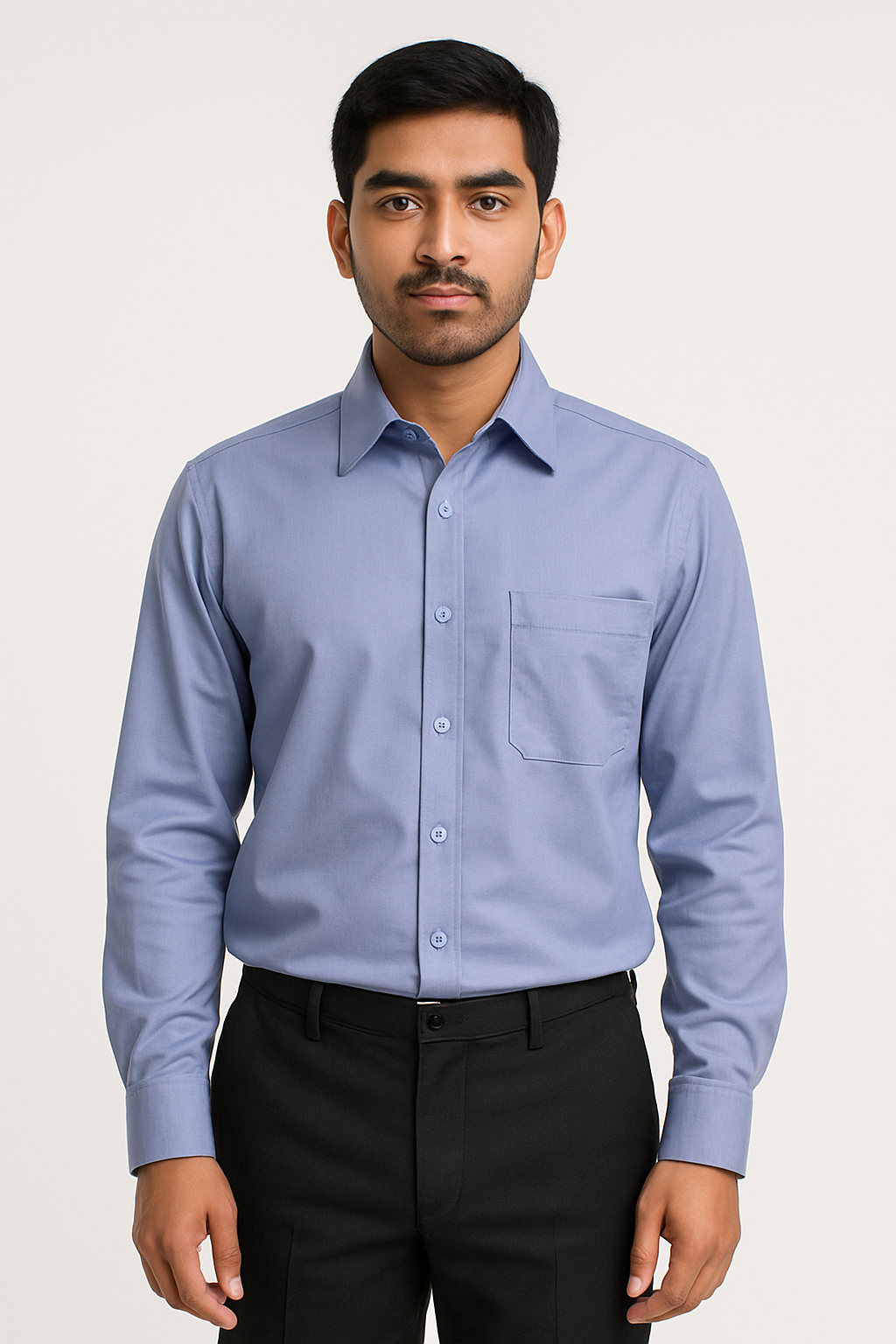 This men’s classic formal shirt is crafted in a premium sky blue fabric, offering both style and comfort for office wear and formal occasions. Featuring a standard spread collar, front button placket with matching blue buttons, and a single chest pocket for added functionality. The long sleeves are finished with adjustable button cuffs, and the shirt has a clean, structured fit that pairs perfectly with trousers or formal suits. Designed for all-day wear, the smooth fabric ensures a polished look from morning to evening.