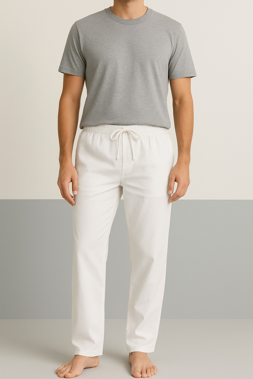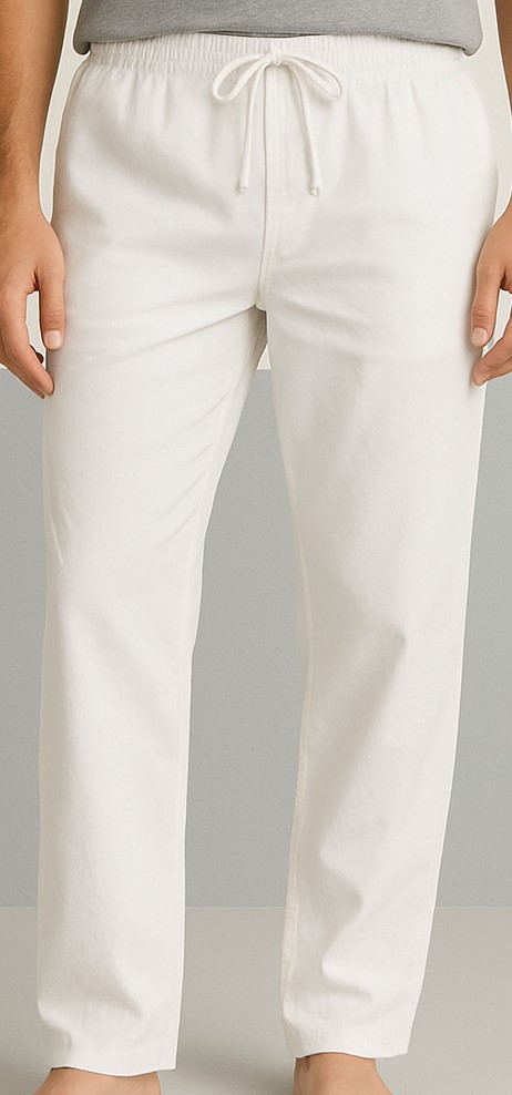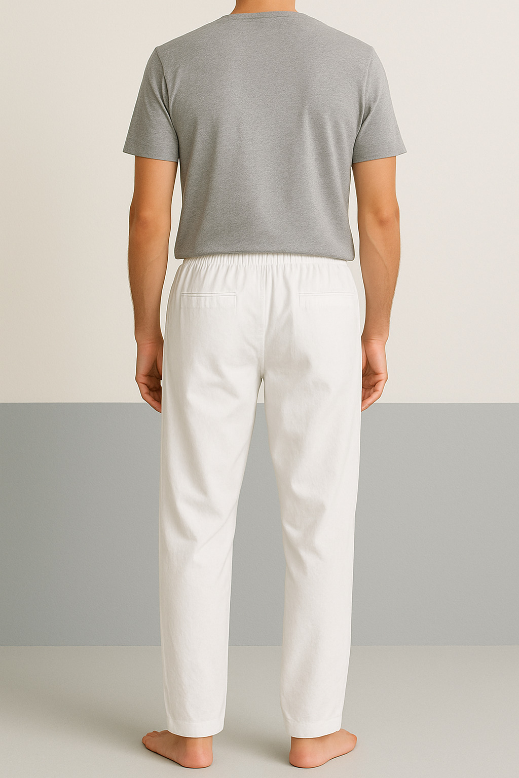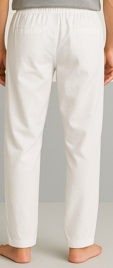 These white cotton lounge pants are the perfect blend of comfort and casual style. Featuring an elastic waistband with an adjustable drawstring, these pants offer a relaxed fit that moves with you. Crafted from soft, breathable cotton fabric, they’re ideal for lounging at home or running errands. The minimal design includes two welt pockets at the back and a clean, tapered leg cut. Designed for all-day ease and simplicity, these pants will be a versatile staple in your wardrobe.