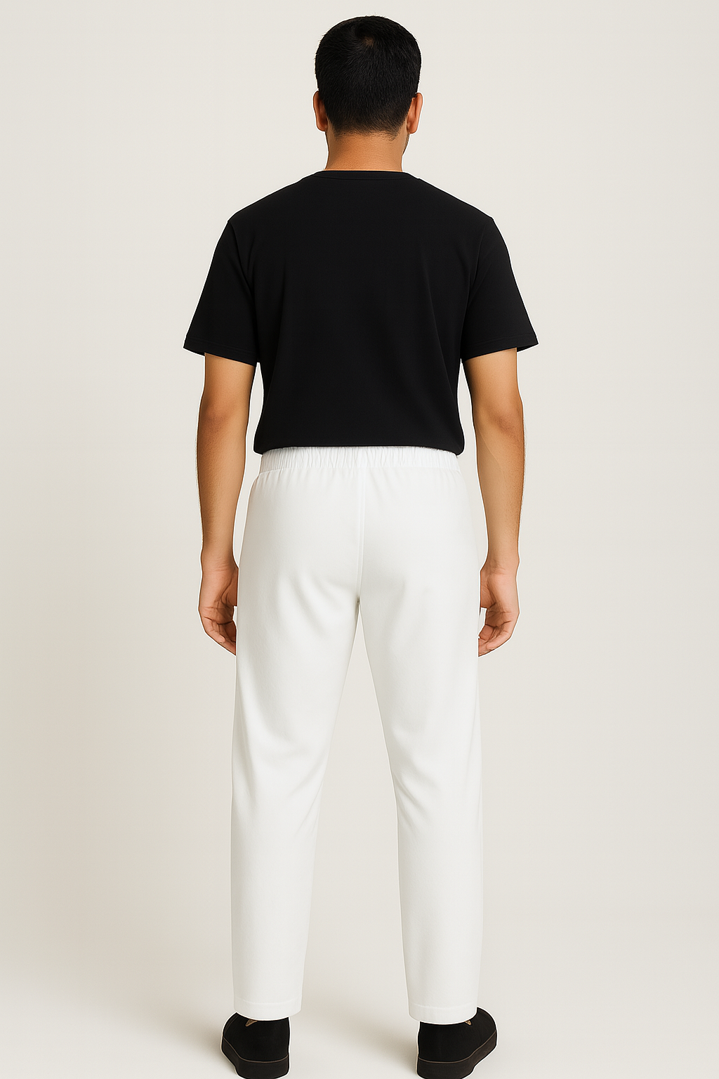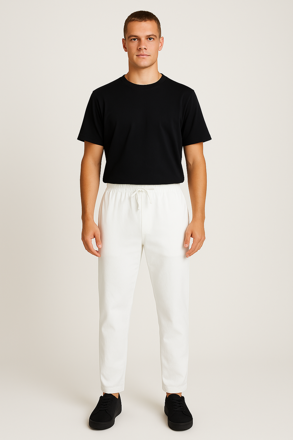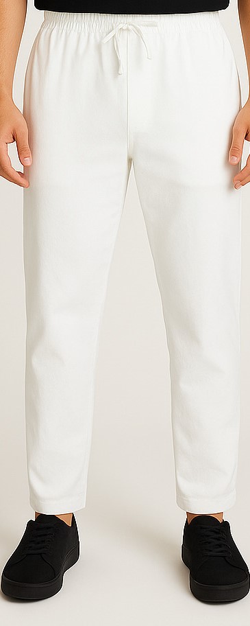 These men’s white jogger pants combine comfort and style with a clean, minimal design. Crafted from a soft, breathable fabric, they feature an elastic waistband with adjustable drawstring for a customized fit. The tapered leg and ankle-length cut provide a modern silhouette, while the pure white color makes them versatile for casual wear or athleisure styling. Perfect for pairing with t-shirts, hoodies, or casual shirts.